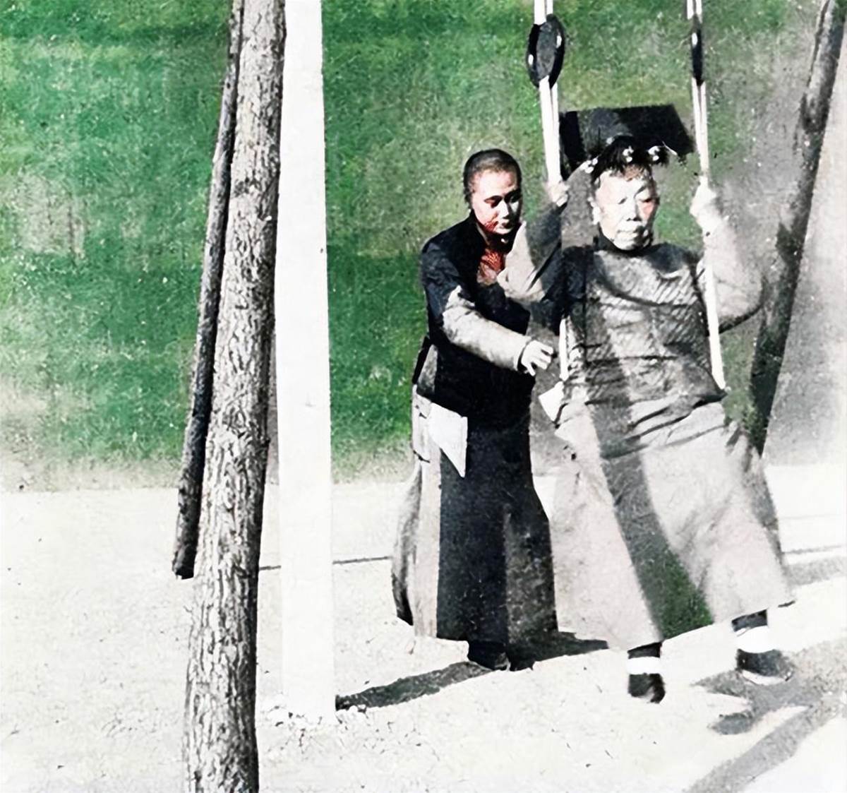 伺候慈禧太后多年的老宮女,在宮中蕩秋千。宮女往往都是十幾歲進宮,伺候主子的并不多,要伶牙俐齒,會察言觀色。一般在二十五歲就得離開皇宮自謀生路,能夠留在宮中的人不是一般人。