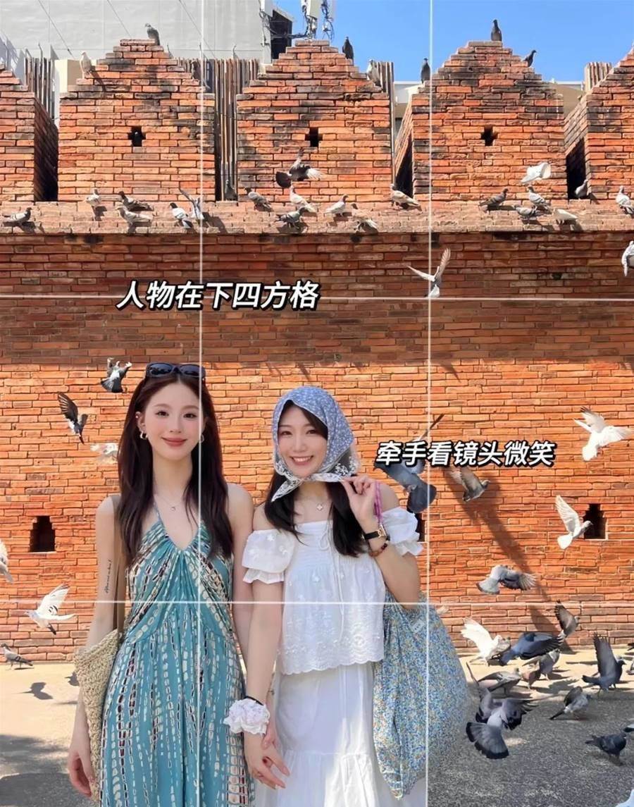 不管是跟閨蜜拍全身照還是半身照,牽手都是能展現你們親密無間的關系的姿勢之一,和閨蜜手牽手拍,微笑看鏡頭,簡約又好看。