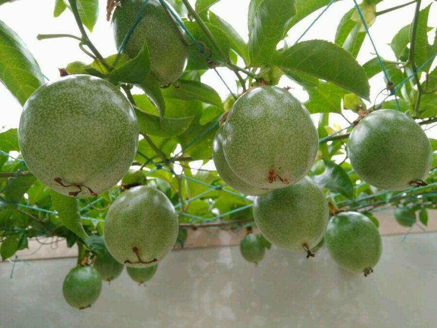 如果家里的陽台略大,或是有小露台,入戶花園之類的,如果光照充足,就不要只晾衣服或是堆放雜物了,可以養幾盆漂亮的花卉,也可以種一些盆栽水果,適合家里養的盆栽水果有很多,比如有盆栽無花果,盆栽草莓,盆栽圣女果,盆栽藍莓等等,但是有一種水果,非常適合盆栽,而且還能爬藤一大片,像綠蘿那樣爬滿墻壁,爬到防盜窗上,還能結出很多很多又大又漂亮、圓溜溜的金黃果子出來,這個就是百香果了。